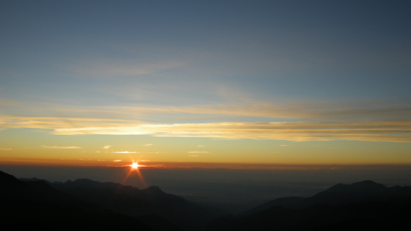 紅色的日出 整個灑在山背上...感覺有種很舒服的fu...